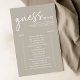 Ta reda på vem som bäst känner till bruden och trimmar med det här Taupe-minimalistgissande-vem-möhippa-spelet! Den här moderna möhippan har en enkel, ren design med ett modernt typsnitt. Detta minimalistiska spel för möhippa är perfekt för en snyggt, modern brud. Det enkla formatet gör det enkelt och lätt för alla gäster att delta i roligten. Se vem som vet bruden och trimmar bäst med det här nya upptaget på den klassiska Gissa Vem-matchen. Den moderna designen ser vacker ut oavsett möhippa!