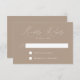 Minimalistiskt, modernt bröllop OSA-kort med ditt OSA datum och anpassningsbarna godkänner/avvisar formuleringen. "Kinly Reply" visas i ett vitt kalligrafiskt skript med en solid taupbakgrund eller färg efter eget val. Designad att samordna med vår moderna elegance bröllop-samling.