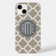 Taupe och Grått Quatrefoil Mönster Triple Monogram