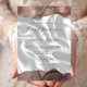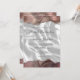 De övre och nedre kanterna på denna eleganta moderna bröllopsinbjudan har en taupe akvarell-agat kant med falskt silverglitter. Den anpassningsbara texten kombinerar handskrift, sans serif och kursiva teckensnitt i kolgrå på en bakgrundsbild av vitt siden. Baksidan har en matchande agat- och siden-design.