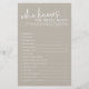 Skruva upp möhippan med Taupe som känner till bästa Möhippa! Detta minimalistiska spel ger möhippan ett nyktert fläkt med dess rena, contemporary design. Med omtänksamma motiv för att avslöja brudens personlighet och preferenser uppmuntrar detta spel till skratt och vänskaplig konkurrens mellan gästerna. Det kommer att glädja bruden att upptäcka vem som betalar närmast uppmärksamhet på de små detaljer som gör henne unik.