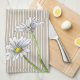 Taupe Striped Floral Watercolor Daisy Kökshandduk