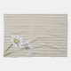 Taupe Striped Floral Watercolor Daisy kitchen towel. Bring fresh, calming style to the kitchen with this elegant taupe striped kitchen towel, accented by delicate white daisies. The soft vertical stripes create a clean, modern look, while the botanical floral detail adds a gentle touch of nature without overwhelming the design.