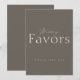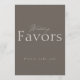 Elevate your wedding reception with this elegant taupe wedding favors sign, designed in a refined minimalist style. Featuring a soft neutral background with delicate script and modern serif typography, this sign brings a timeless and sophisticated touch to your wedding decor.