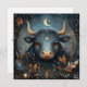 This stunning art work depicts a bull, the symbol for the zodiac sign of Taurus. It has a celestial, magical, fantasy feel to it. The text is for a Happy Birthday greeting, but you can change it to include a name. There is also an area for including a message and any of the text can be deleted to have a blank card. This is a flat, square greeting card. AI assisted graphic purchased with commercial use. Artwork: RedHeronLighthouse
