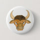 En vit knapp med huvudet på en tittar tjur för en person som är född under färgen Aries, från en färgsmålning av Judy Adamson. Matchande födelsedagskort och presenter finns också tillgängliga.