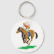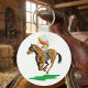 En jockey och en tävling-häst ut för en galop. Den här designen ser ut att vara effektiv i den här nyckelkedjan