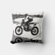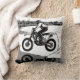 En ung motocross-förare är tävlan längs floderna kant som sprutar vatten bakom sig. Underbar för barn och idrott i alla åldrar.