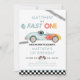 Den här beundransvärda inbjudan innehåller en blå vattenfärgsbil i tävling med flamdetaljer.