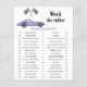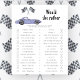 Kort för inbjudan till babydusch för biltemat i tävling med vattenfärgade illustrationer av lila (violett) vintage bil och svart - vitt tävling flagga. "Tävling på för en babydusch."