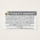 Dessa TAVS-affärskort i Fransken "Varför veganism?" är perfekter för att kunna förflytta sig i din handväska, plånbok eller bil för att marknadsföra veganism och dirigera människor till en webbplats där de kan lära sig mer om veganism och hur de ska gå till vegan. På fronten står det: "Si vous pensez qu'il est mal de faire souffrir les animaux, vous croyez déjà que vous devriez être végane." Baksidan säger: "Pourqui le véganisme? Est-ce que vous pensez qu'il est mal de causer de la souffrance aux animaux en frånvaro de nécessité? Si oui, vous croyez déjà que vous devriez être végane. Nous n'avons pas besoin d'utiliser les animaux pour nous nourrir, nous vêtir, ni pour aucune autre raison. S'il vous plaît, notez que le problème n'est pas dans la façon de traiter les animaux. Le problème est que nous utilisons les animaux, parce que toute forme d'utilization des animaux do toujours un degré inévitable de souffrance et des morts non nécessaires ...Incluant les produits laitiers, les oeufs, et les produits dits "éthiques". S'il vous plaît, informez-vous: fr.abolitionistvegansocety.org" Promote veganism överallt, och support TAVS samtidigt!