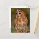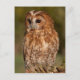 Djurkort som visar uggla sitta vid gren. Tunga uggla eller bruna uggla (Strix aluco) är ett lager av medelstora uggla som ofta finns i skogsområden i stora delar av Eurasien. Dess underliggande delar är blek med mörkar, och överdelarna är antingen bruna eller grått. Bostaden ligger vanligtvis i träd hål, där man kan skydda sina ägg och unga mot potentiella rovdjur. Även om många anser att uggla har en exceptionell nattvision är dess näthinnan inte mer känslig än en människas. Snarare är det öron som är nyckel till jakten på grund av att de ge den tawny uggla har en utmärkt riktad utfrågning. Dess nattliga vanor och härskningar, som lätt imiterats, har lett till en mytisk förening av Tawny uggla med dåligt tur och död.