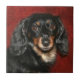 Svart långa haired det keramiska taxansiktefotoet belägger med tegel