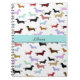 Gullig anteckningsbok som du kan skräddarsy med ditt namn. Det presenterar färgrika lite taxhundar på en vitbakgrund. En aquarand kör till och med centrera som väntar ditt namn.