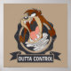 Kolla in den här brickan av TAZ™ med en banderoll som visar "Outta Control". Klicka på Anpassa om du vill ändra bakgrunden till färg.