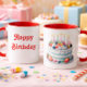 Taza de cerámica con diseño dulce y encantador, ideal para celebrar momentos especiales. Presenta una delicada ilustración de una torta de cumpleaños con capas en tonos pastel, decorada con frutillas y velas, creando un estilo alegre y festivo. Perfecta para regalar o disfrutar de tu café o té favorito, aportando un toque cálido y colorido a cada día.