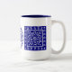 taza en dos colores con dibujos que imitan la talavera de puebla México