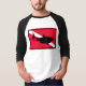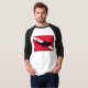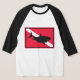 Denna skjorta har det rött, svart, och vitdykare undertecknar med en svart silhouette av en underbar vithaj på den.