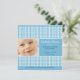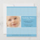 {TBA} Vacker rutig (blå) födelseannonsering Meddelande