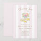 Te för två rosa ränder andra födelsedagsfirande te inbjudningar