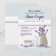 En charmig inbjudan i mjukt blått med små hjärtan som visar en kopp och tallrik och en tekanna med lavendelblommor. (<a href="http://www.freepik.com">Designad av Frimufilms / Freepik</a>). <br/><br/>Kortet är lätt att anpassa med din text, typsnitt, typsnittsfärg och val av sex papperssorter.<br/><br/>Inte exakt vad du söker? Alla våra produkter kan utformas för att passa dina behov utan extra kostnad.<br/><br/>Kontakta oss helt enkelt på askcottonlamb@gmail.com<br/><br/>Koordinerande produkter finns tillgängliga: