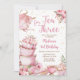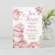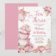 Tea för tre Födelsedagsfesters Rosa Blommigt Tea Party-inbjudan