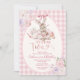 Tea For Two Easter Bunny Pink Gingham 2nd Birthday Inbjudningar