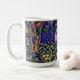 Mysigt isolerad stol med bok och tekopp, omgiven av en trädgårds skönhet och fredlighet - ett fredligt område med ro, azaleas, periwinkle m.fl. - i färg på djup blå bakgrund. Ett av fyra mugg med olika stolar/boo/tekopp färg. Illustrerad av konstnären L Diane Johnson, som har rest för att fånga några av världens mest spännande trädgårdar. Njut!