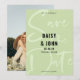 Te-grönt-typografi sparar datumkortet med en öga-infångande modern design med ditt foto på baksidan.