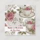 Te-kopp i ett kreme färg och rosor i en ro shades med sage-löv, flyt på en grå bakgrund. All text är lätt att anpassade.