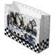 En stor glansig presentpåse med en vintage Alice i underlandsbilden, på framsidan och baksidan av Mad Hatters te-party med Alice, marschen och Dormus på en kontrolltavla för grått och vitt och svart och vitt. Se matchande medelstor presentpåse, konfekt, förmånspåse, förmånslåda, presentdekal, rektangulär märkre och papper förpackning. Se hela Alice i Wonderland Gift Bag-samlingen i SPECIELLA TUUCHES | Avsnittet Party favors.