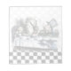 5,5 x 6-tums anteckningsblock med en tvättat vintage Alice i Wonderland-bilden av Mad Hatters te-party med Alice, marsharen och Dormus på en grått- och vit och vit kontrollerbar bakgrund. Se hela Wonderland Anteckningsblock-samlingen i SPECIELLA TUUCHES | Avsnittet Party favors.