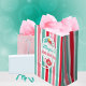 Den här födelsedagspressen har en färgfull strimlad mönster med en tekanna accent och är redo för dig att anpassa dig efter din egen text.