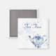 Söt blå och vit kylmagnet med en blå och vit teburk av blommigt, på blekens blå bakgrund, texten läser Tea Time och kan anpassas för att läsa vad du vill.