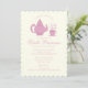 Rosa tekanna och tekopp med vita daisy rosa inbjudningskort för möhippan. Anpassa som önskat.