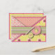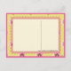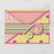 Retro-köket med blandning och matchande utskrifter av diken och viskéer definierar denna brev-liknande kortdesign med rosett band och tekanna och tekopp-medaljoner.