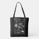 Grunge tarot card design för te älskare! Tea. Vit och svart illustration med en tekanna som häller vatten i te kopp, tebuske och skelett.