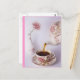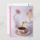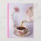 En kopp av tea som hälls med en blomma i liten vas, gör en lockande vykortinbjudan för ett eftermiddagteaparty. Skräddarsy denna vykort med ditt ställe och tajma!