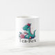 A cute cartoon dinosaur enjoying a warm cup of tea, surrounded by blooming roses and sparkling stars. The cheerful dino, with pink blush and a flower crown, radiates charm and coziness—perfect for designs that spread joy and relaxation.