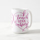 Snygg manusgrafi på djupt plommon som säger "Teach". Kärlek. Inspire." med en skiljelinje mellan hjärta och penna. Perfekt för lärargåvor, klassrumsdekoration eller inspirationshanddukar.