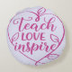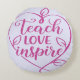 Snygg manusgrafi på djupt plommon som säger "Teach". Kärlek. Inspire." med en skiljelinje mellan hjärta och penna. Perfekt för lärargåvor, klassrumsdekoration eller inspirationshanddukar.