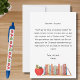 Imagine surprising your favorite teacher with this wonderful thank you note. It also includes a cute, colorful image of a red apple and books on a shelf in a watercolor style. Personalize card with your own message or use ours (just remember to change the names in default message). Perfect for your favorite teacher. Browse matching products.