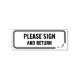 The professional self inking stamp provides a clean and authoritative way to manage office documentation with efficiency. The design features bold sans serif typography with the clear instruction to “please sign and return”, ensuring that important paperwork is processed quickly and correctly. A sleek double border with rounded corners frames the text, adding a modern architectural feel to the layout. The inclusion of a minimalist pen icon in the bottom corner serves as a functional visual cue for the recipient. This high quality stamp produces a crisp, consistent impression every time, making it an essential tool for maintaining an organized and upscale office environment.