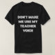 Den här konstiga t-shirt-texten: Gör mig inte Använda till min lärarröst. En underbar gåva till en lärare. Ett lekfullt och humoristiskt sätt för någon, ofta en lärare eller någon som har en myndighetsställning, att på ett skämtsamt sätt hävda sin auktoritet eller kommandouppmärksamhet.