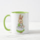 En gullig illustration av en kanin som ha på sig en calicoklänning och en skyddsförkläde, innehav en tekanna. Konst av Carmen Medlin.