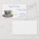Denna härliga visitkort presenterar en härlig teakopp på vänster sida med en tea hänger lös bredvid den. All text är anpassadet för din affär!