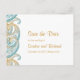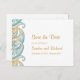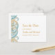 Brevkort från Indiska bröllop spara datum med formgivning av teal och guld paisley. Underbar för traditionella bröllop och andra evenemang.