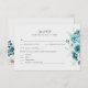 Öka föregripandet av din speciella dag med vårt Teal and Off-White Wildblomma-Bröllop OSA-kort. Med en perfektens designharmoni som kompletterar hela samlingen tillför detta kort lite elegans till dina bröllop-förberedelser. På framsidan, bredvid den förtjusande vattenfärgen vilda blommor och delikat löv, hittar du alternativ för menyval och kostpreferenser, så att gästerna blir bekväma. På motsatt sida, adress på evenemangets plats. Serene teal och off-white nyans skapar en lugn ambians, medan det sofistikerade typsnitt är en tidlös charm. Utöka en krävande inbjudan som kapslar in romantik i firande samtidigt som alla detaljer är väl organiserade. Det kommer att glädja gästerna att svara och vara en del av er kärlek-fyllda dag.