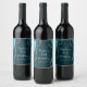 Teal and Silver Agate Marble Birthday Vinflaska Etikett