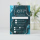 Complete your event stationery with this elegant RSVP card featuring a teal blue agate marble design accented with luxurious silver details. The bold geode-inspired background creates a dramatic and sophisticated look, perfect for weddings, birthdays, formal celebrations, or glamorous evening events. This RSVP card includes dedicated sections for guest responses, number attending, and meal selection, making it easy to gather all the details for your event. The clean, modern typography keeps information clear and easy to read while complementing the rich agate texture. Easily personalize all text to suit your event and coordinate with matching stationery.